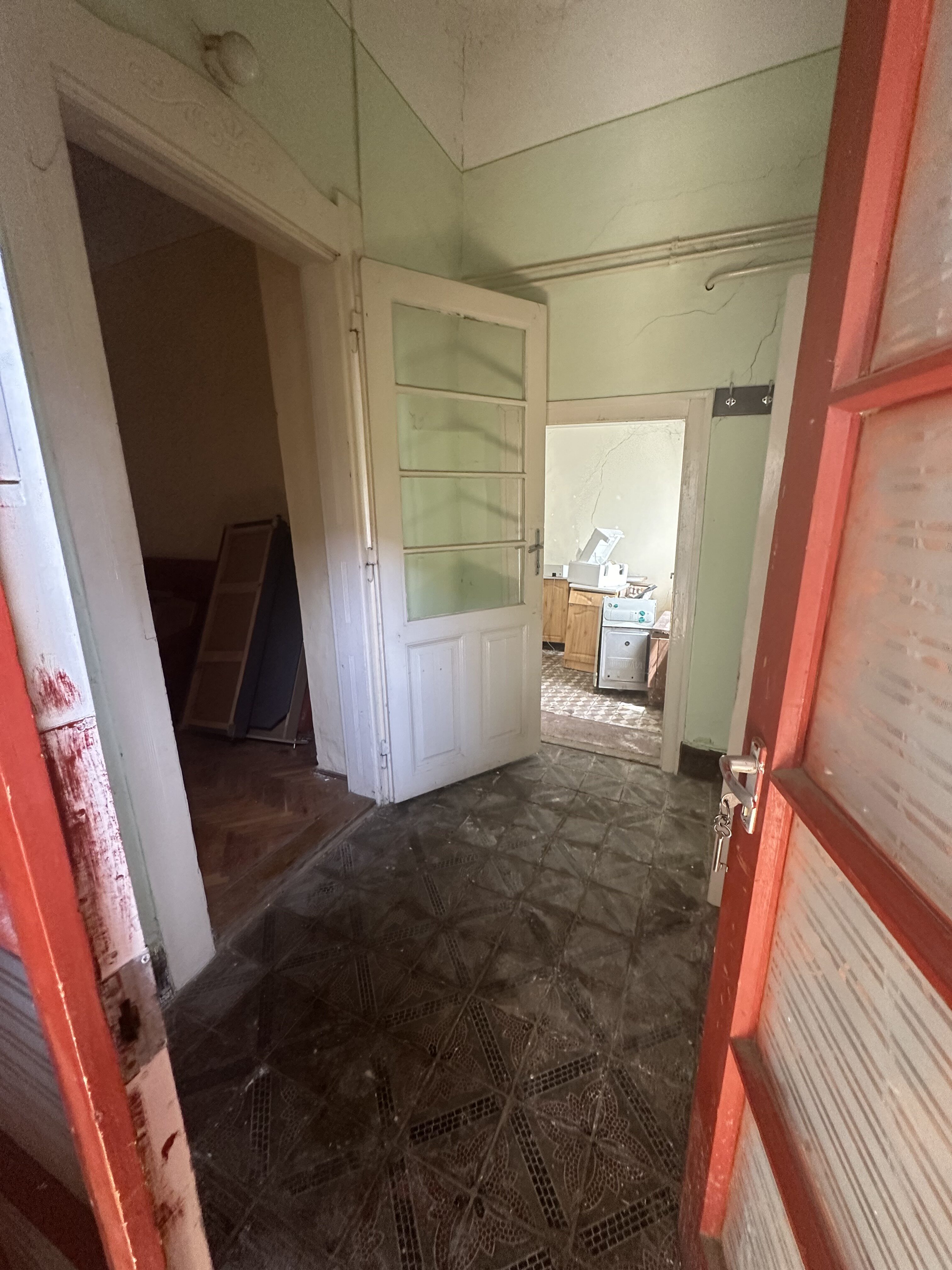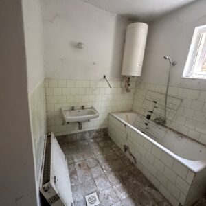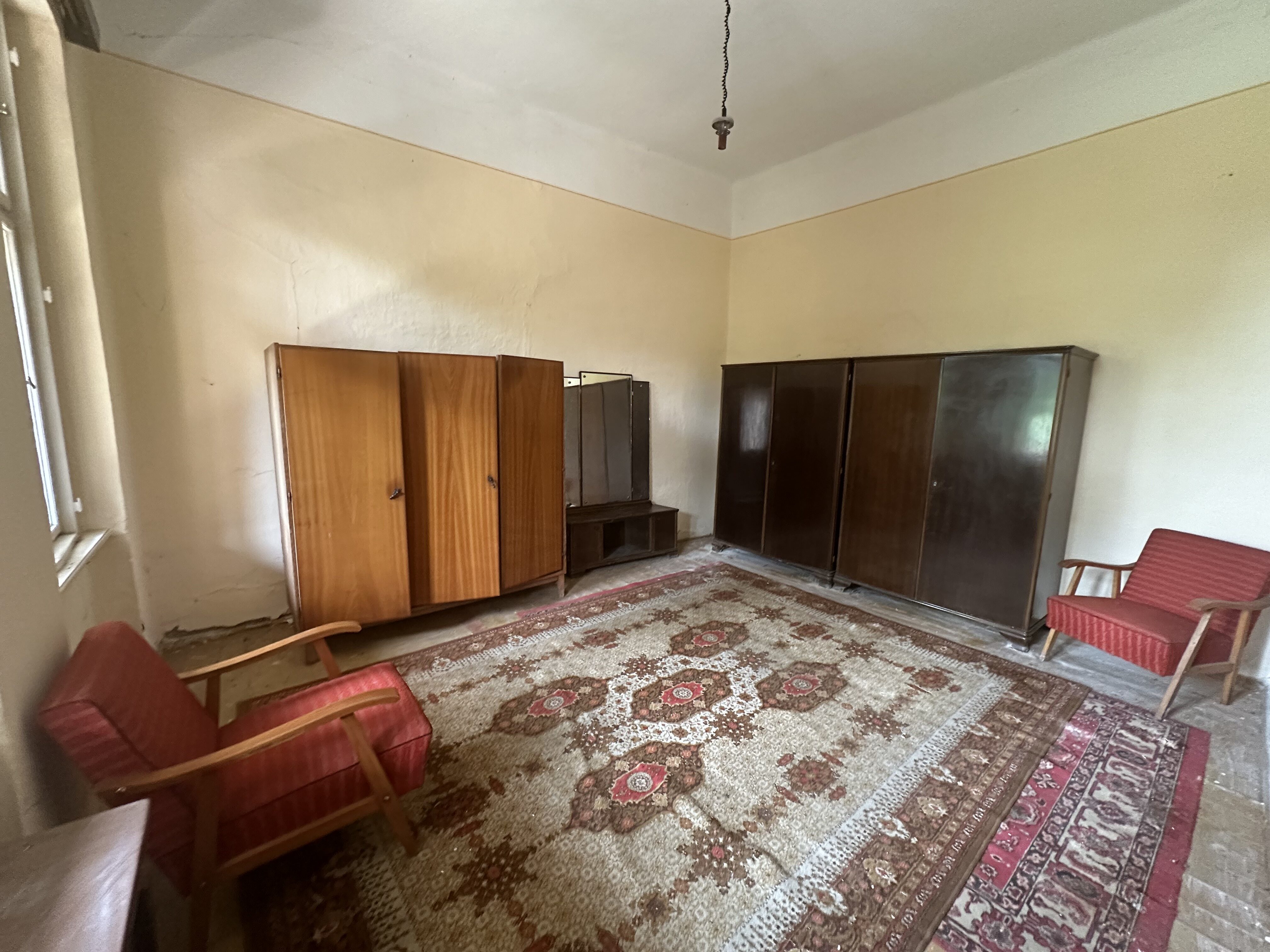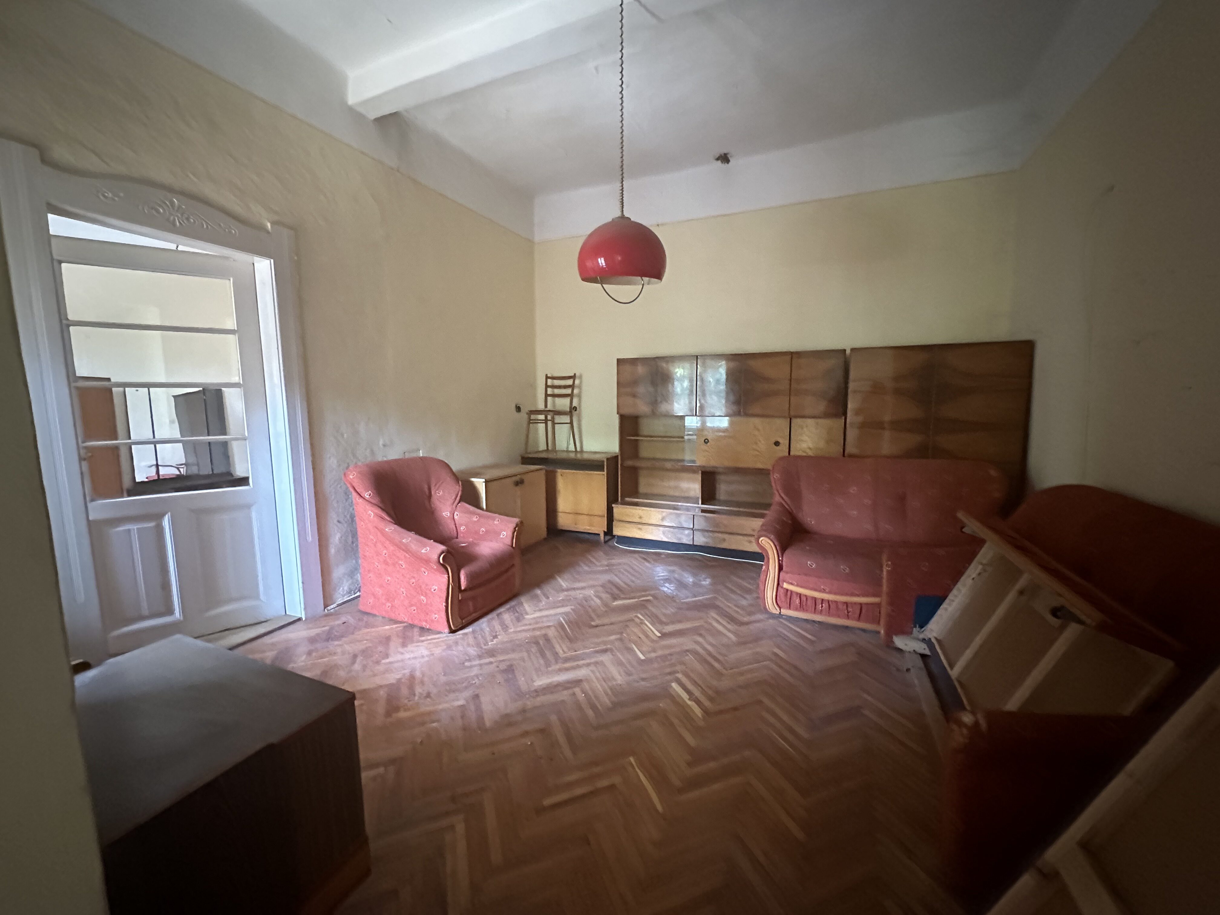 A telek három részre osztott, a három házrész miatt. Az általam kínált lakásban előszoba, kettő szoba, konyha, kamra, pince, fürdőszoba, WC található, külön közművesítve.