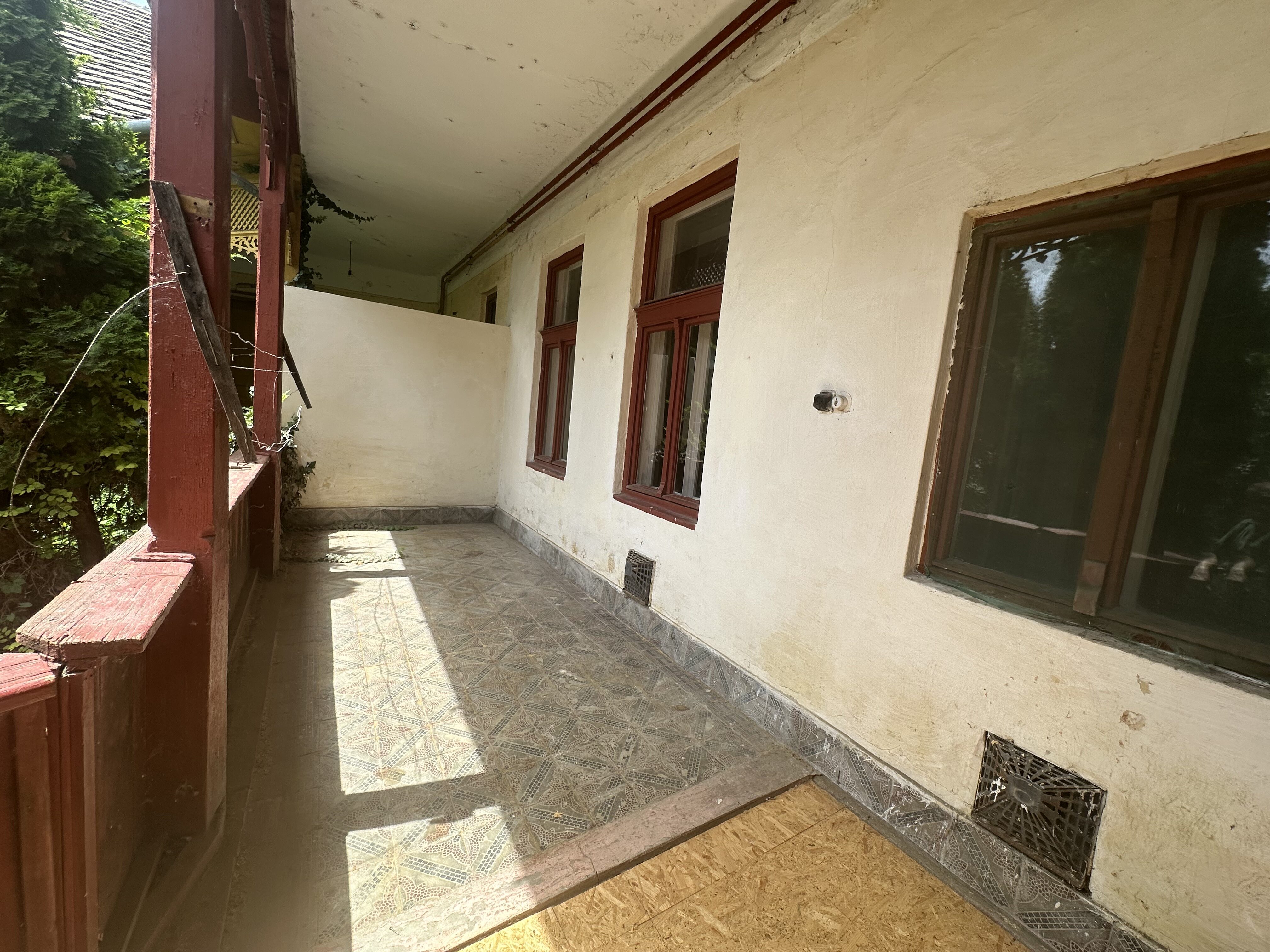 Az ingatlan kialakításának köszönhetően kialakított fedett terasz, ami világos, napos és közvetlen kapcsolatban van a zöld udvarral.