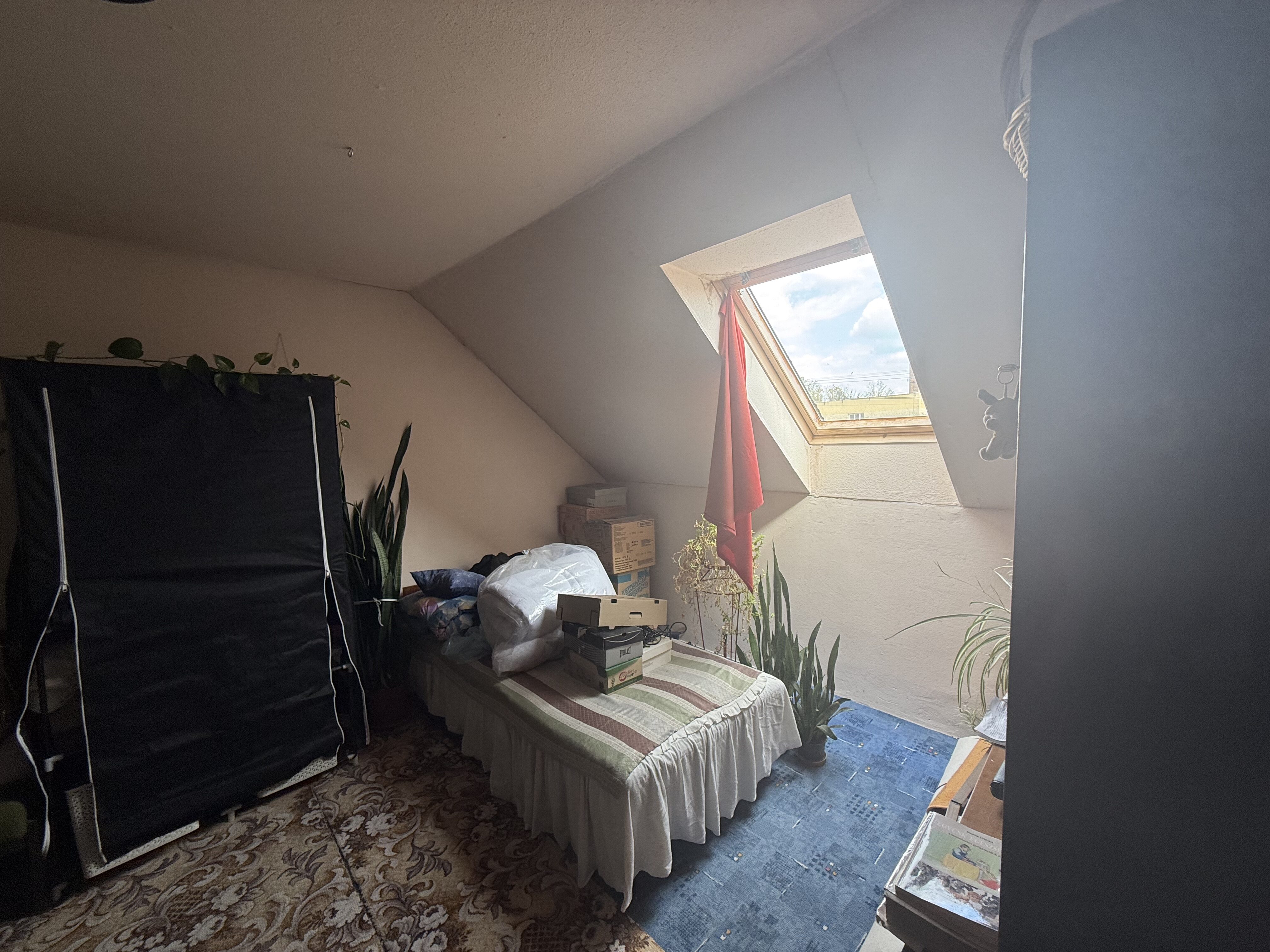 Az ingatlan egy 100 m²-es, téglaépítésű ház, amely praktikus elrendezésének köszönhetően ideális választás családok számára. Az emeleti szinten két külön nyíló szoba található, melyeket egy folyosó köt össze.